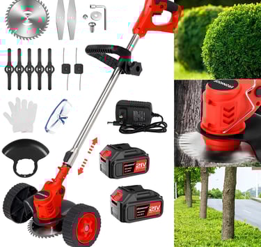 Roçadeira Cortador De Grama Eletrico 2 Baterias Com Road 110/127/220v Vermelho