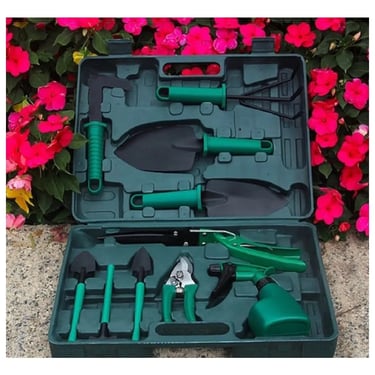 Kit Para Jardinagem Tesoura Poda 10 Peças Com Maleta